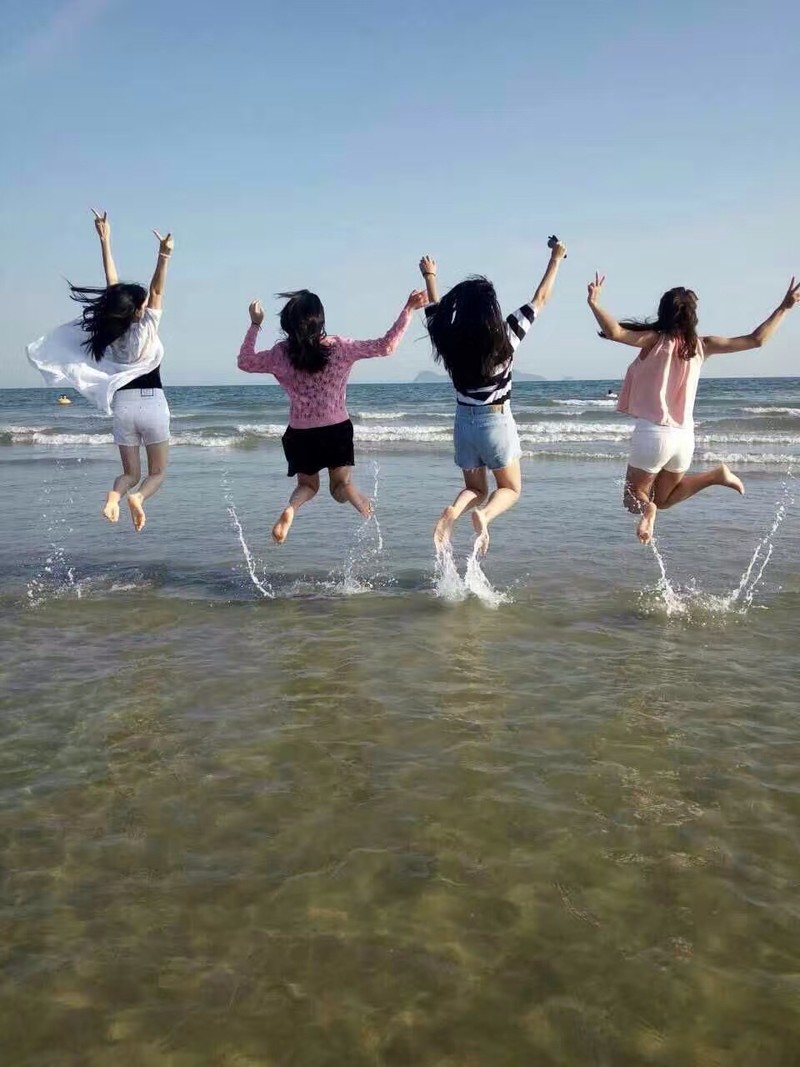 亲海去啦,和大海零距离接触,在海里嬉戏,在沙滩漫步,堆沙人,玩球·····