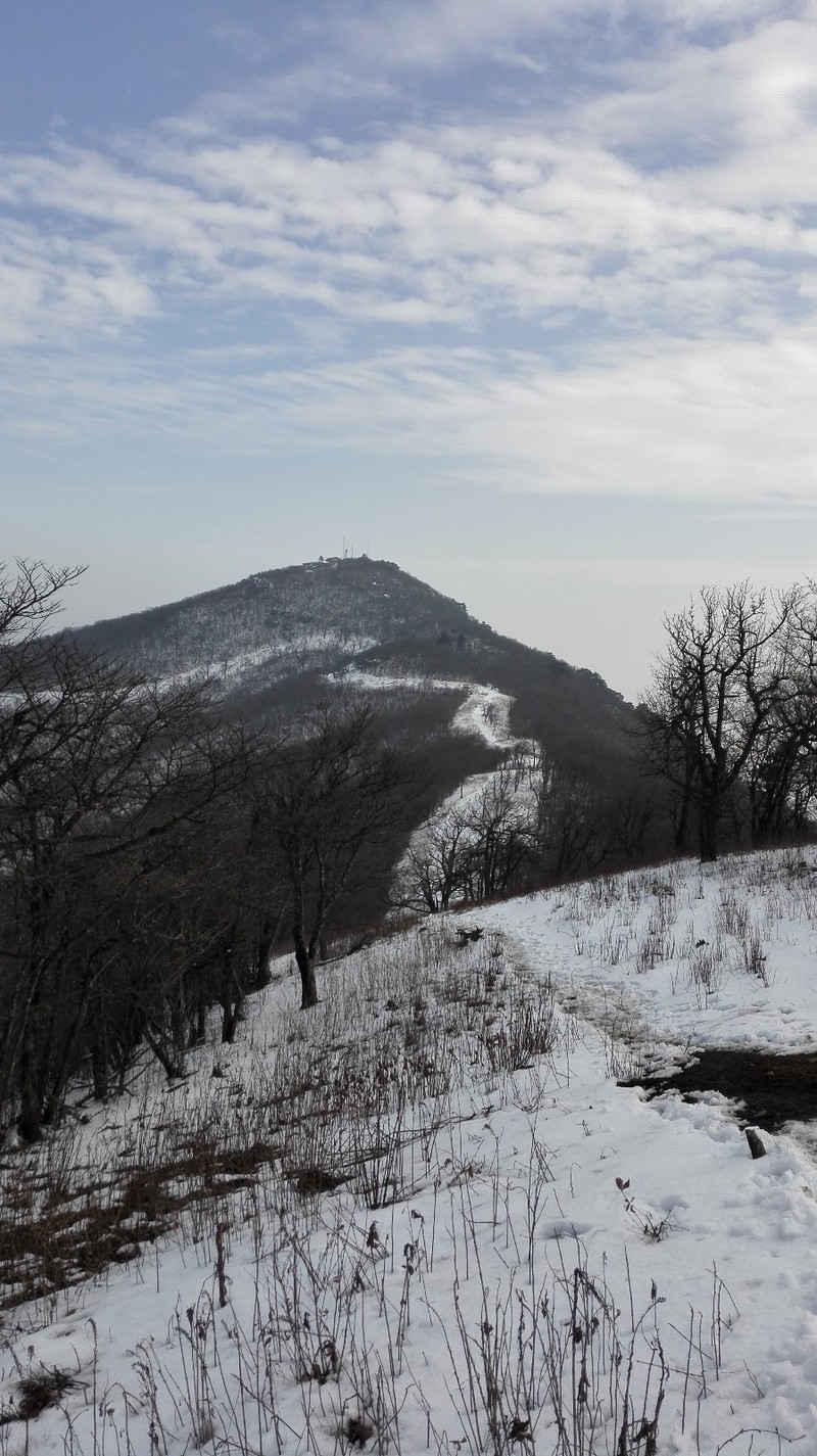 仙人顶下来,右拐沿防火道下山。有些地方比较陡,能感觉到没雪的话泥土很松,会很滑,现在有积雪,正好可以防止打滑。本来对积雪下山还有顾虑,一走,感觉比没积雪好多了。