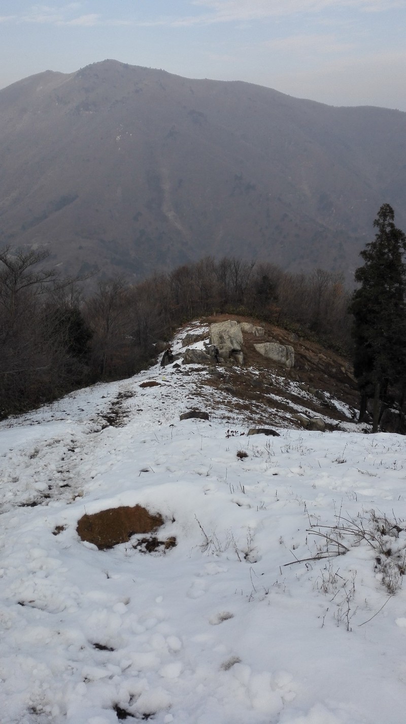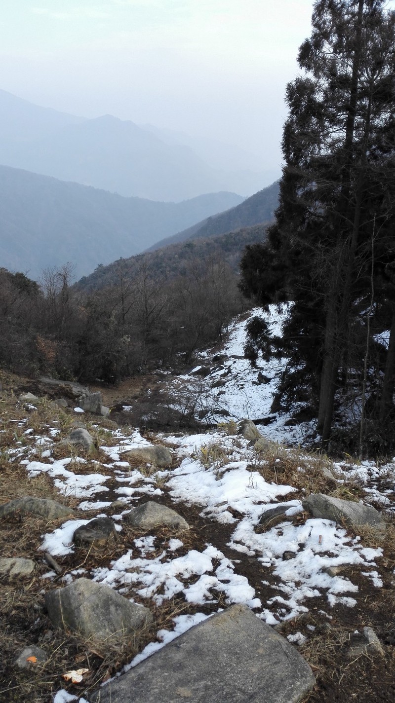 西关右边小径,向上穿行,左右均是细竹,很稀疏,二十来分钟,上行至公路,右拐。